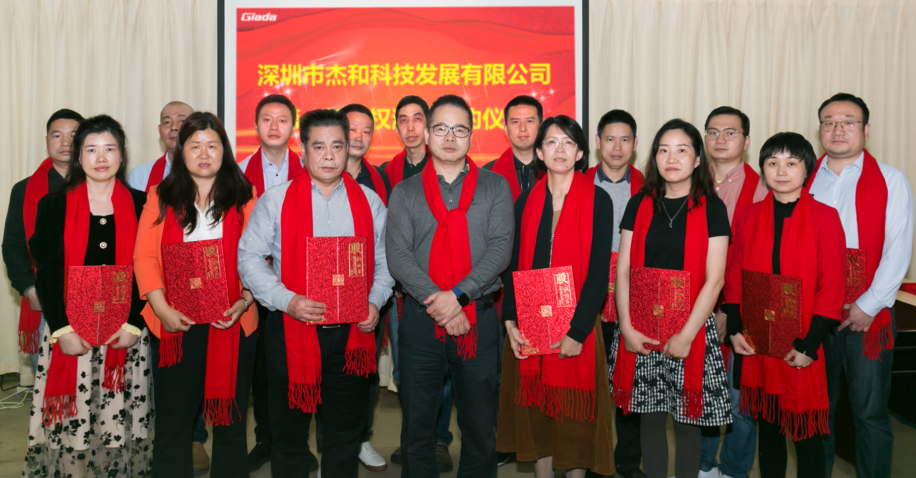 沐鸣娱乐科技及东莞杰拓的一级、二级部门长,股权激励对象等相聚一堂,共同见证了公司的这一重要时刻。