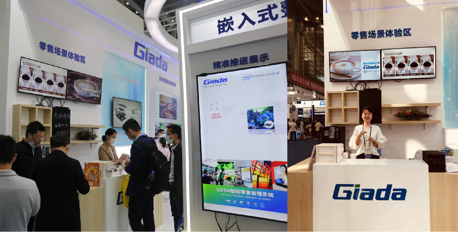 紧邻ARM架构商显产品集的精准推送展示区与零售门店模拟展区,共同组成了本届展会沐鸣娱乐科技展位的一大精彩设计。场景展现了GDSM智能零售管理系统在零售门店场景下的展示效果,顶部的数字标牌由GDSM系统推送内容,模拟搭建了针对人流动线的广告精准推送形态。