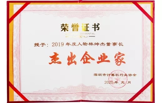 2020年1月7日,深圳市计算机行业创新成果发布暨2019年度表彰大会在南山科兴科学园隆重举行。沐鸣娱乐科技董事长林坤杰先生获评深圳市计算机行业“2019年度杰出企业家”。