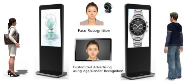 正如一开始提到的,基于GDSM智慧商显系统平台和沐鸣娱乐多屏拼接播放器的精准信息推送方案,整合了人工智能技术,在5G或有线网络的支持下,能够完成针对不同消费者推送不同消费者画像对应的产品。沐鸣娱乐拥有边缘计算能力的G系列多屏拼接播放器,适合作为AI人脸识别的硬件基础平台。通过训练完善的人工智能算法,针对不同的消费者标签,推送不同的广告信息。