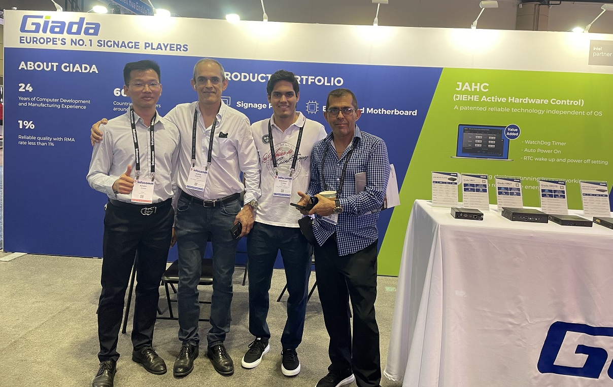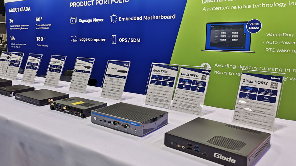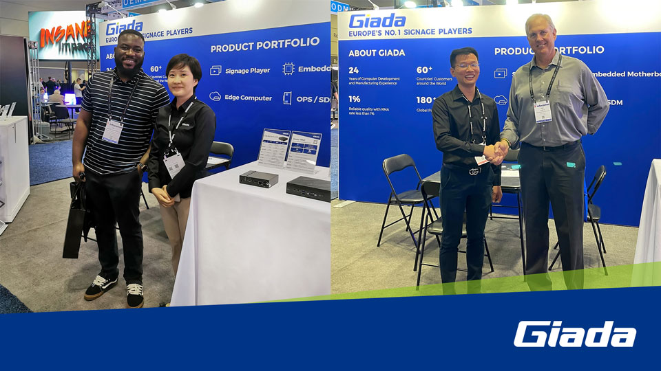 展会上Giada沐鸣娱乐科技携最新的数字标牌和信息亭应用解决方案以及最新尖端产品惊艳亮相!其中最新的数字标牌播放器、边缘计算机和OPS(开放式可插拔规范)产品在现场备受关注,标志着Giada沐鸣娱乐科技互动显示器和智能标牌解决方案领域的重大进步,也向全球参展观众集中展现了公司的非凡实力。