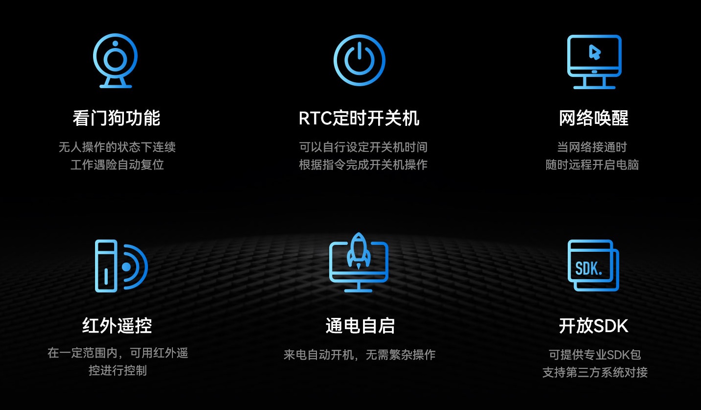 沐鸣娱乐科技DE76B4支持Android操作系统,配置高可靠无人值守专利技术,包括定时开关机、看门狗计时器、RTC宕机自检、红外遥控和局域网唤醒等功能,可以有效降低能源消耗,节省人力维护成本。采用被动冷却系统,无需风扇运转,运行时无噪音和防尘,降低故障率,并达到0℃~60℃宽温工作标准,可在复杂电磁环境等各种条件下稳定运行。