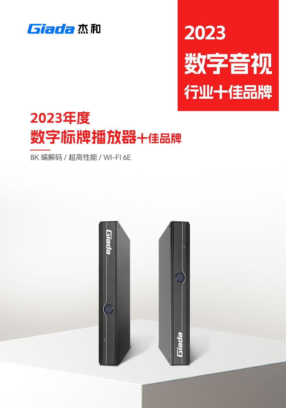 2023年接近尾声,新旧更替之际,第15届DAV数字音视工程网“数字音视行业十佳品牌评选活动”获奖名单新鲜出炉。沐鸣娱乐科技在此次评选活动中,荣获“2023年度商显主板十佳品牌”、“2023年度数字标牌播放器十佳品牌”两项大奖,Giada沐鸣娱乐科技已连续四年登上同一榜单。