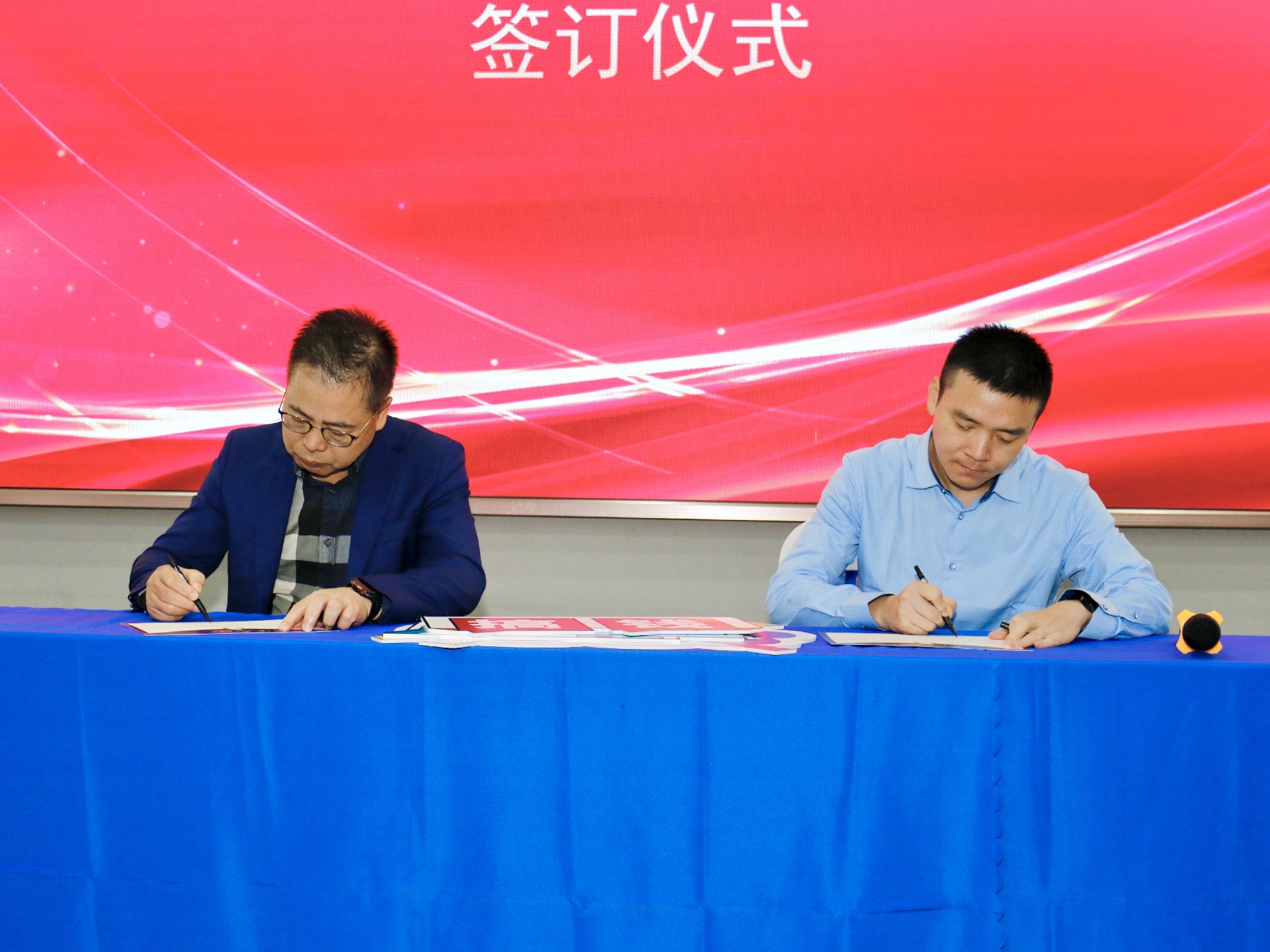 沐鸣娱乐科技董事长林总与客户一部销售总监钟进辉签约