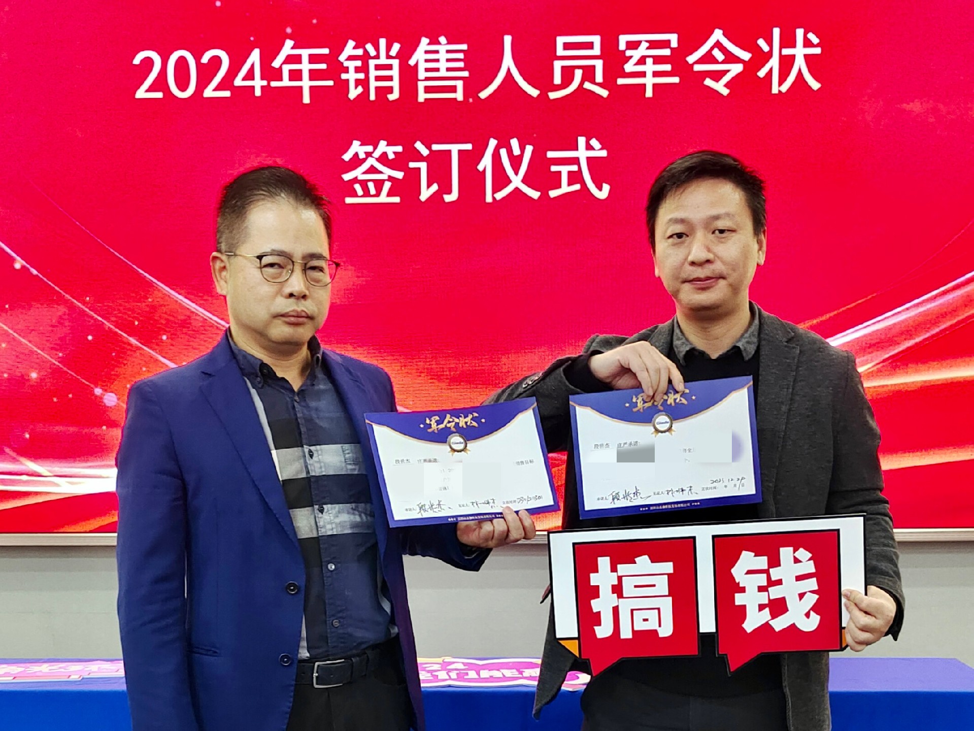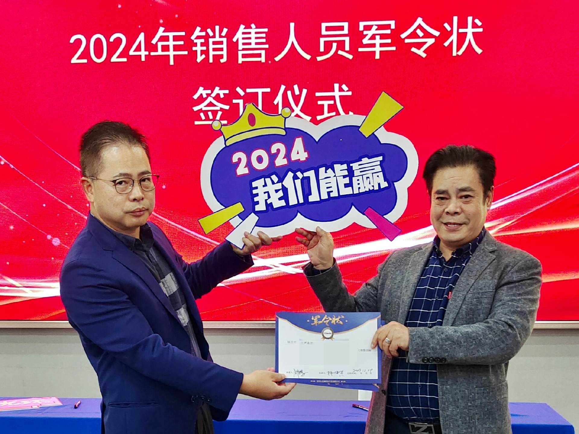 2024公司年度战略目标确立,言出必行,使命必达,国际/国内销售团队为了共同的目标开始军令状签约仪式。一纸军令状,是沐鸣娱乐科技与销售人员的双向承诺,是压力,更是动力。是不破楼兰终不还的决心,更是春风得意马蹄疾,一日看尽长安花的期待。
