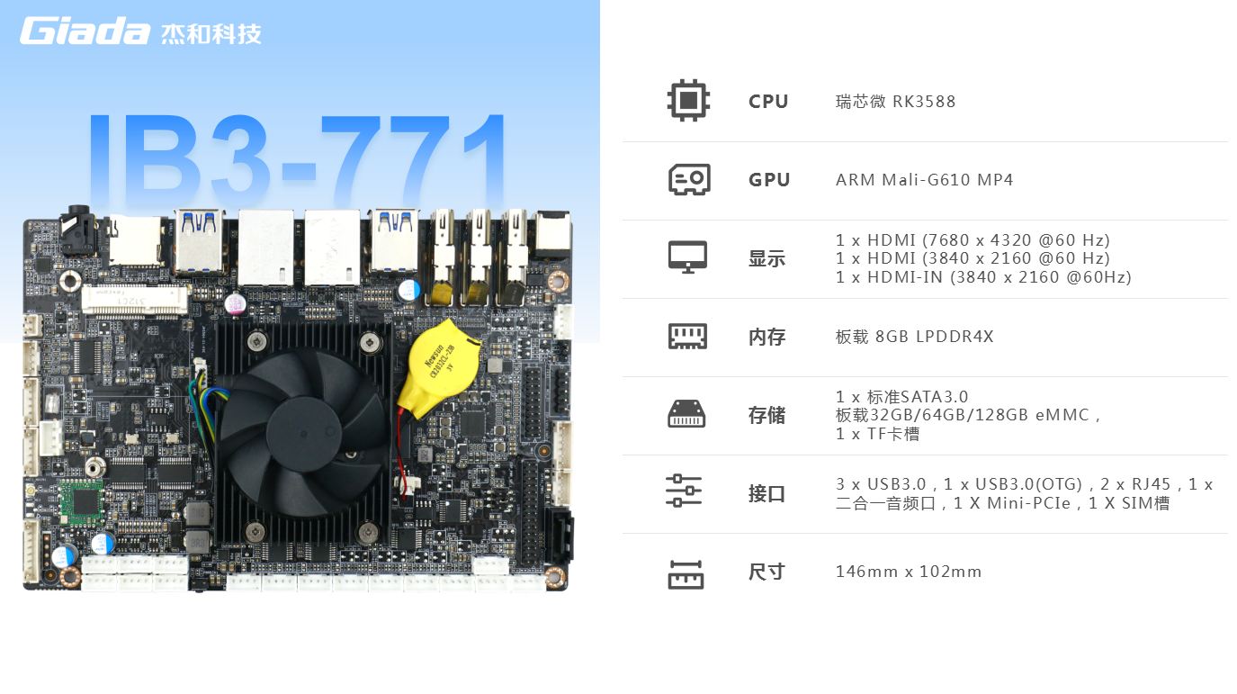 沐鸣娱乐主板IB3-771内置瑞芯微新一代旗舰级高端芯片RK3588,6TOPS算力的NPU,具有高算力、内存大、超强多媒体、多重扩展等技术优势。支持主流深度学习框架,能够为各类养老 AIOT 应用场景提供更优的性能表现。